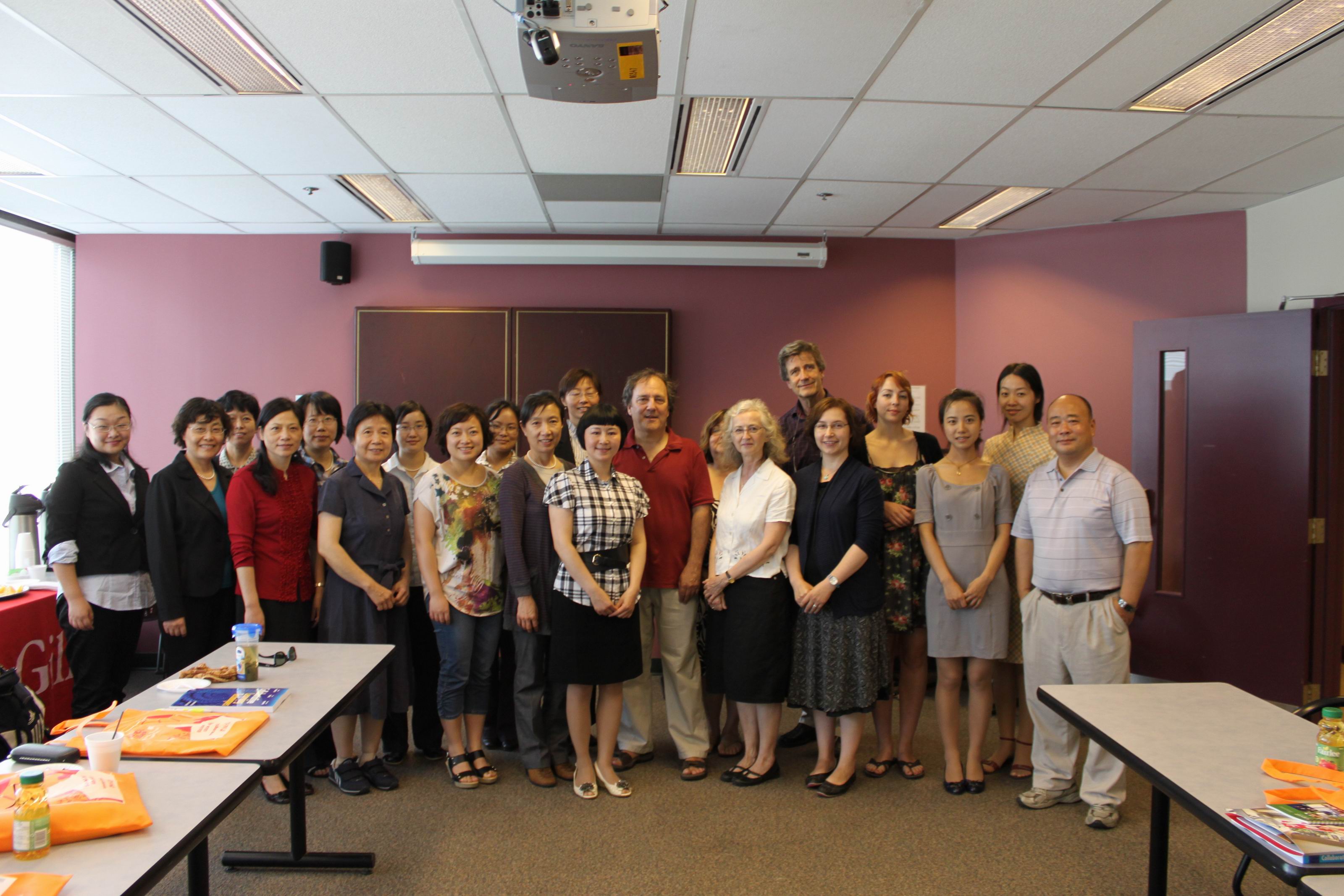 公司14位教师于7月10日晚顺利抵达加拿大麦吉尔大学,并于7月11日上午9:30,在麦吉尔大学继续教育公司1025会议室参加了由麦吉尔大学继续教育公司举行的欢迎仪式。出席本次欢迎仪式的加方成员有:麦吉尔大学继续教育公司经理Judith Potter、语言及跨文化交际中心主任Hervé de Fontenay、以及涉及本次培训的授课教师和行政管理人员。