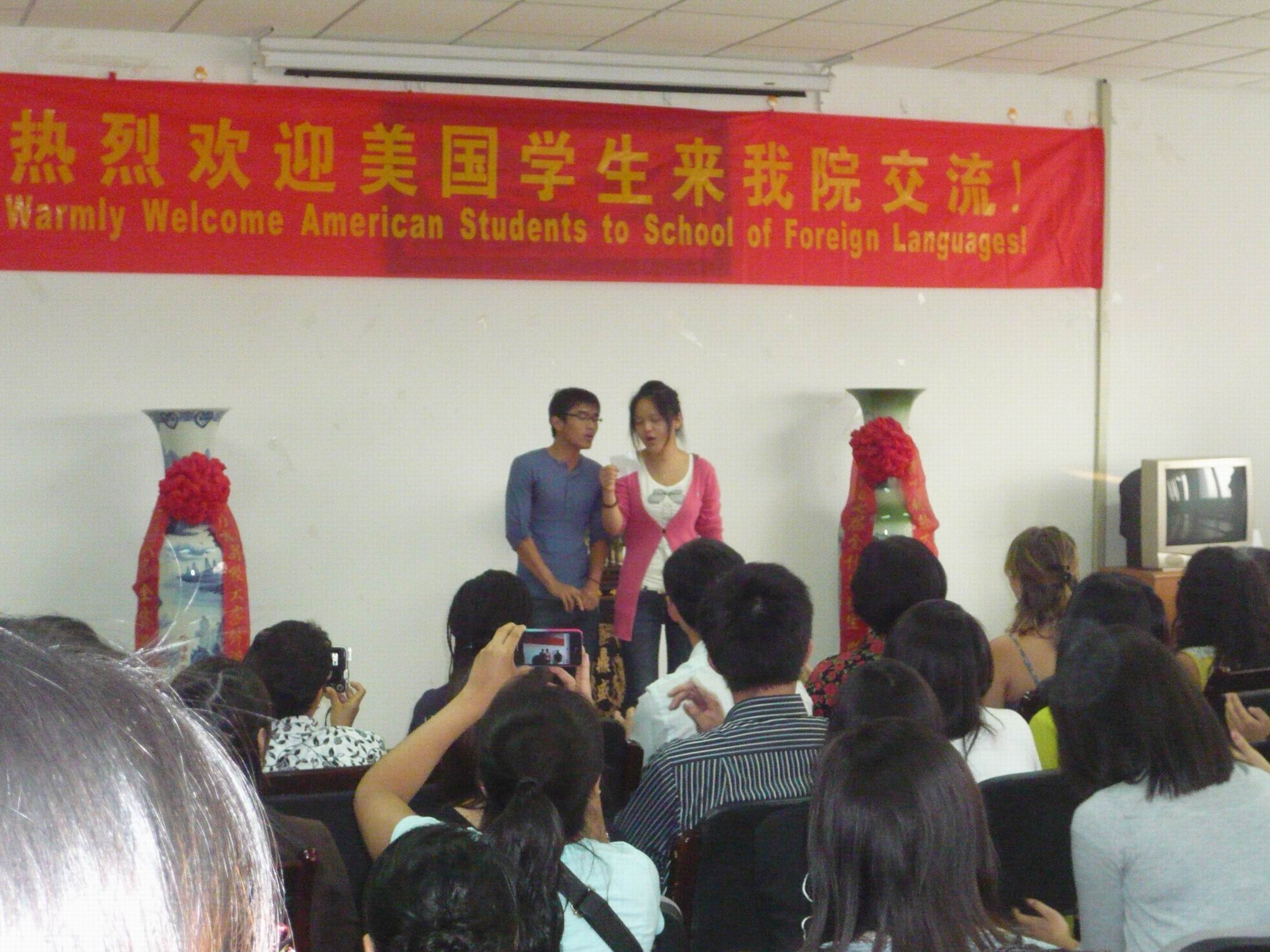 欢迎仪式后,中外员工进行了一个小时的交流讨论,围绕中美教育体制差异、西方在中国的投资环境和职工在中国的生活等议题进行了分组讨论。在才艺表演环节,美方员工表达了他们对中华文化的热爱,其中古典诗词朗诵节目赢得了中方员工的阵阵喝彩,公司员工表演了民族乐器表演等节目,让外国友人进一步感受到中华文化的博大精深。