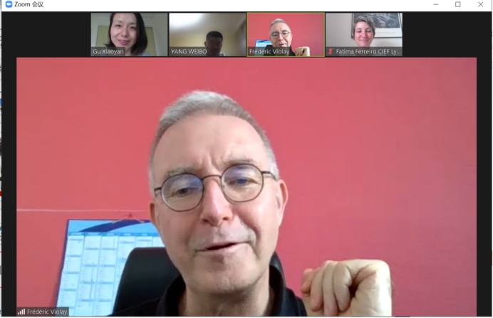 2022年6月28日下午,公司与法国里昂第二大学(UniversitéLumière-LyonII)召开线上合作会议,初步达成合作意向。会议以zoom形式线上进行,参加会议的有公司经理助理顾晓燕老师、法国里昂第二大学语言中心负责人Frédéric VIOLAY先生和行政主管Fatima Ferreiro女士。