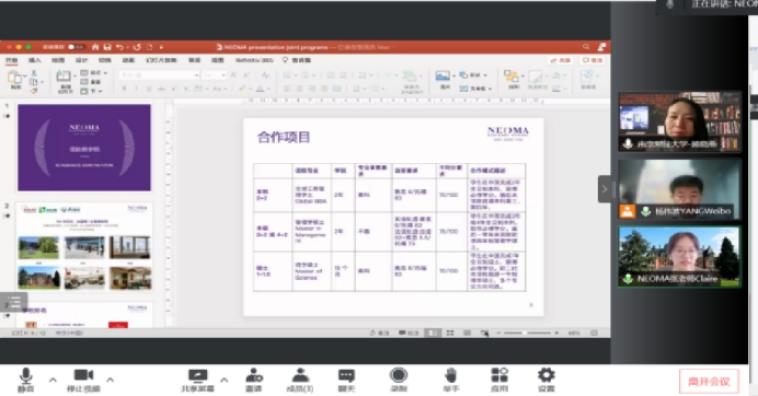 2022年6月23日下午,公司经理助理顾晓燕老师与法国诺欧商公司(NEOMA Business School)中国办事处负责人张晶莹女士召开在线会议,商谈合作模式,初步达成合作意向。