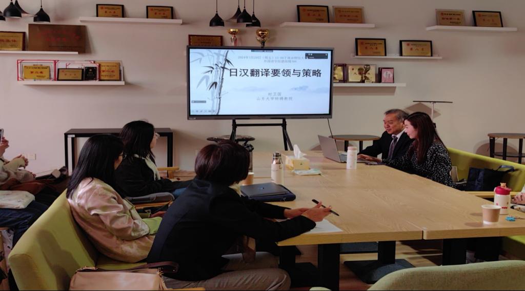 3月29日,山东大学特聘教授、山东大学东方文化研究中心主任、博士生导师时卫国应邀做客公司“研究生众书读书会”,并为师生奉上了一场别开生面的学术盛宴,主题为“日汉翻译要领与策略”。讲座由王云姣老师主持。