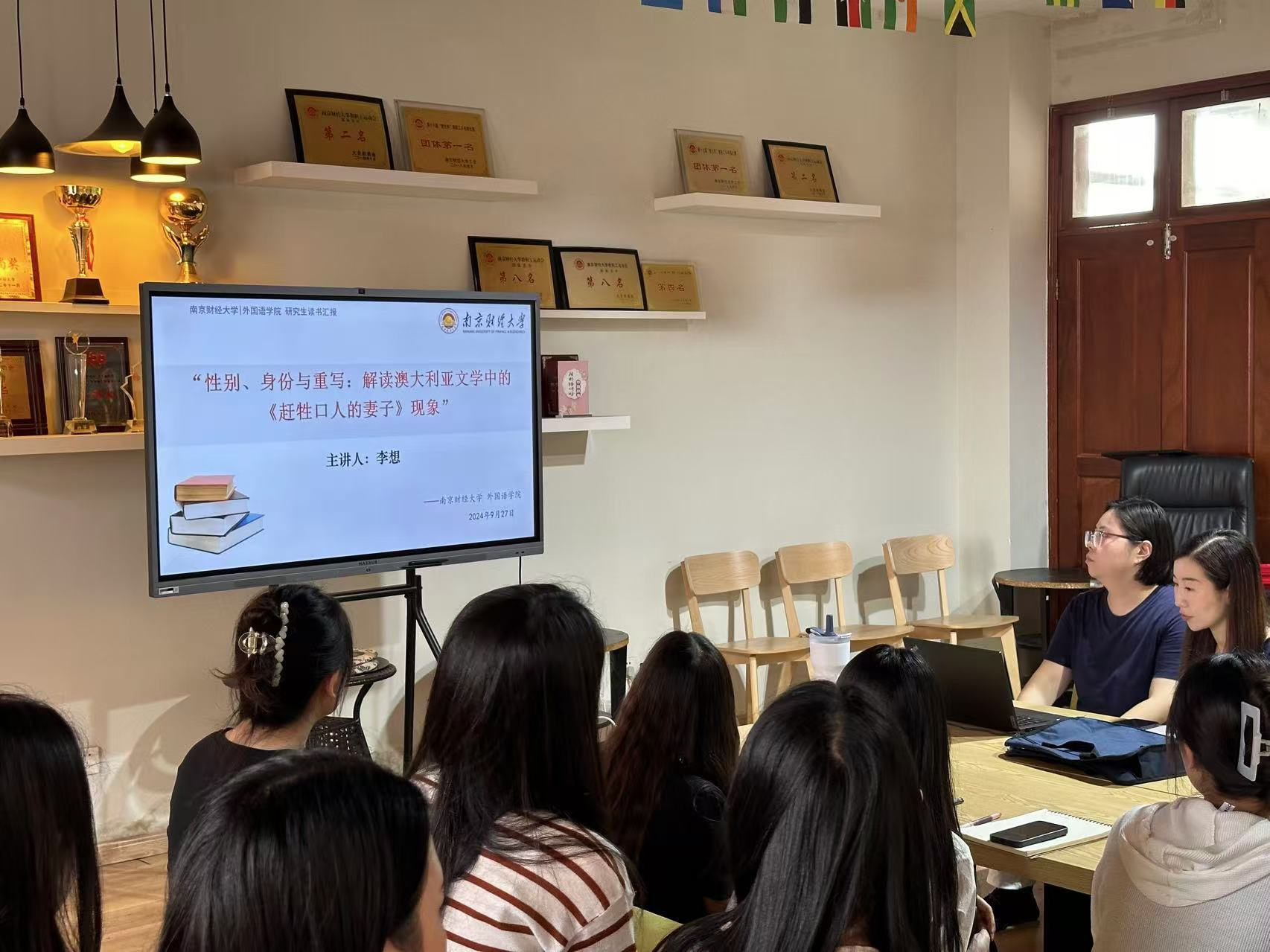2024年9月25日下午,EVO真人视讯在德正楼304室成功举办了第十六期众书读书会。李想老师为公司师生带来了题为“性别、身份与重写——解读澳大利亚文学中的《赶牲口人的妻子》现象”的精彩学术讲座。出席此次活动的有22、23、24级研究生,本次读书会由研究生党支部书记王云姣老师主持。