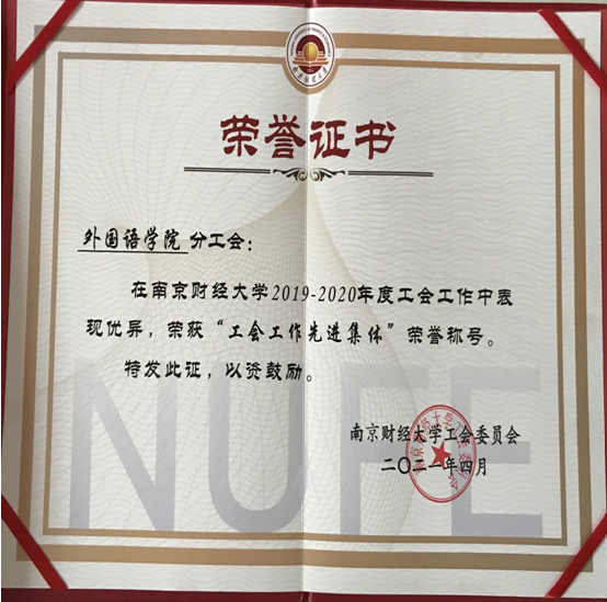 4月13日,校工会发布《关于表彰2019—2020年度工会工作先进集体、先进个人的决定》(南财工字[2021]5号),公司分工会荣获“工会工作先进集体”称号,这是对公司工会过去一年工作的肯定,也给工会未来的工作带来极大的鼓舞。