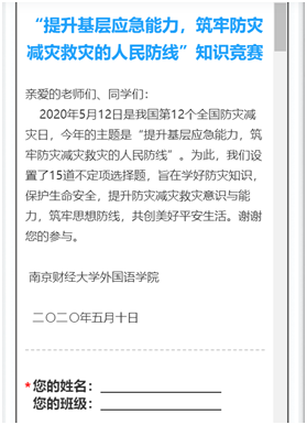 本次竞赛共设置15道题,涉及地震、海啸、洪水、泥石流、台风、雷电等多个方面的常识与必要举措,同时也针对防疫抗疫相关应急举措进行了知识普及,敦促师生们珍惜防疫抗疫成果,养成良好习性,自觉保护生态环境,防止自然灾害与人间灾难。