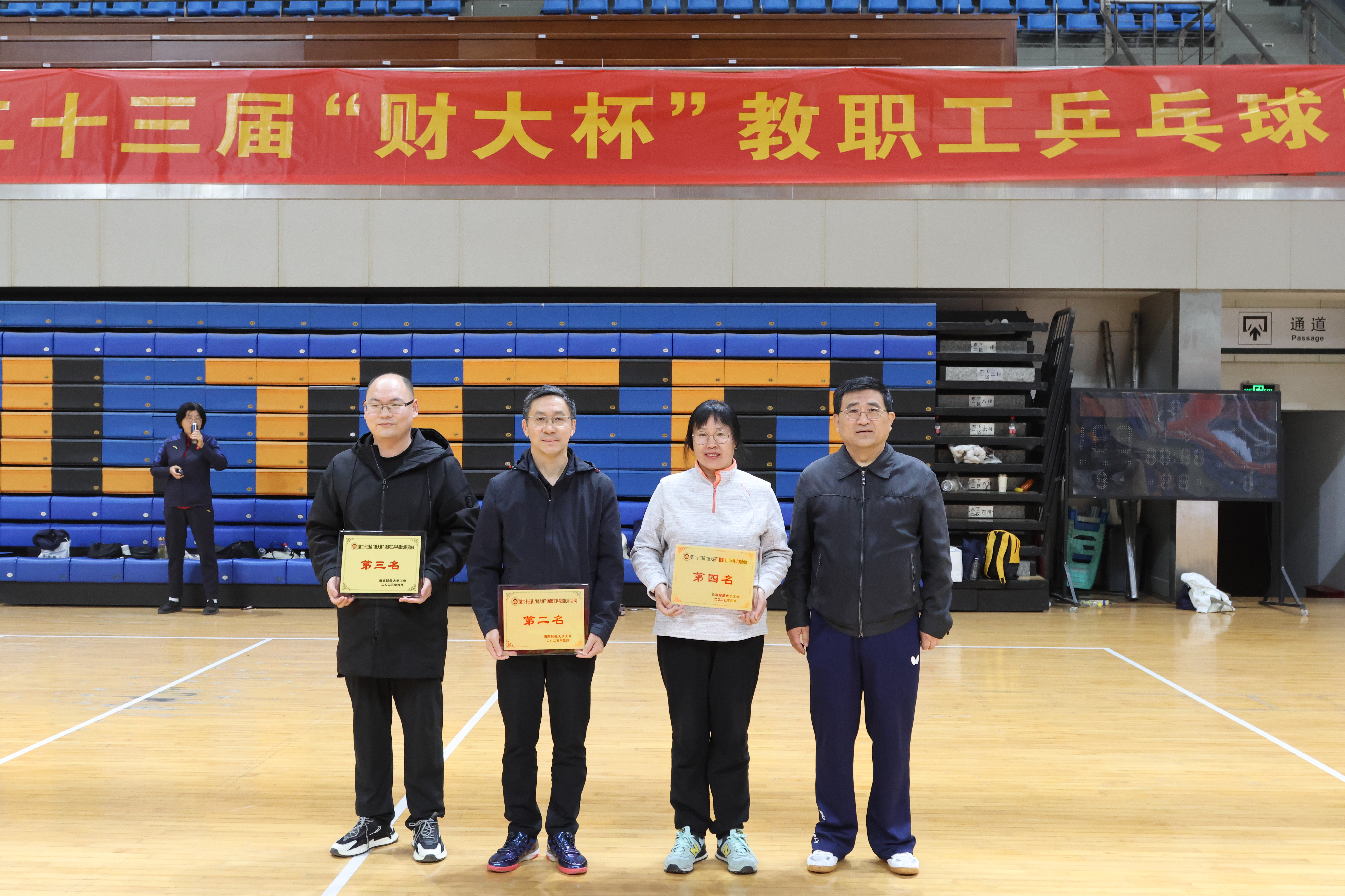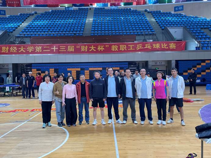 4月12日,由校工会、体育部联合主办的第二十三届"财大杯"教职工乒乓球比赛在仙林校区体育馆圆满落幕。本届赛事共吸引包括校领导代表队在内的24支队伍、近200名教职工运动员参与竞技。公司党委书记张利民亲自代表校领导队参赛,并在赛场上为运动员们加油助威。党委常委、副董事长李煜出席开幕式并致辞,校工会主席孙丹兵主持开闭幕式。